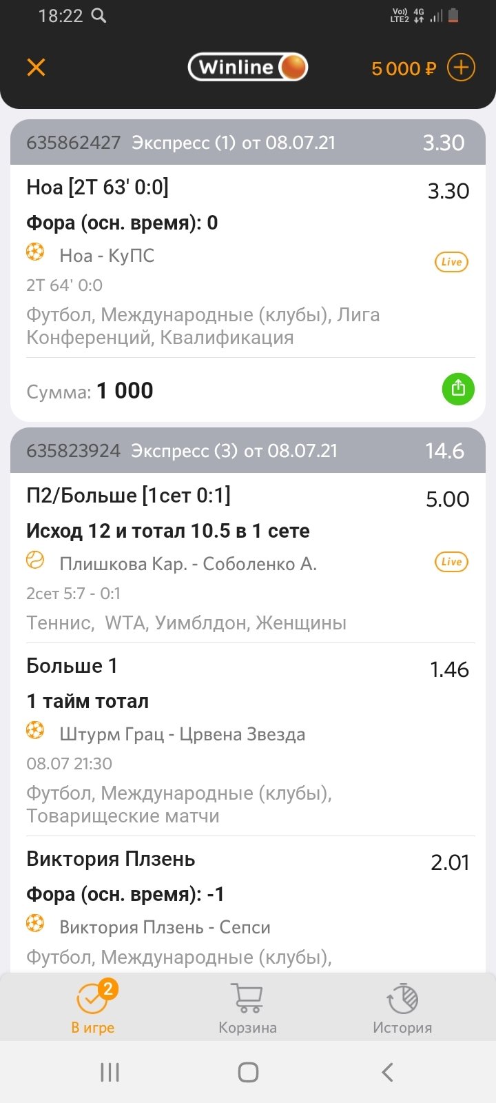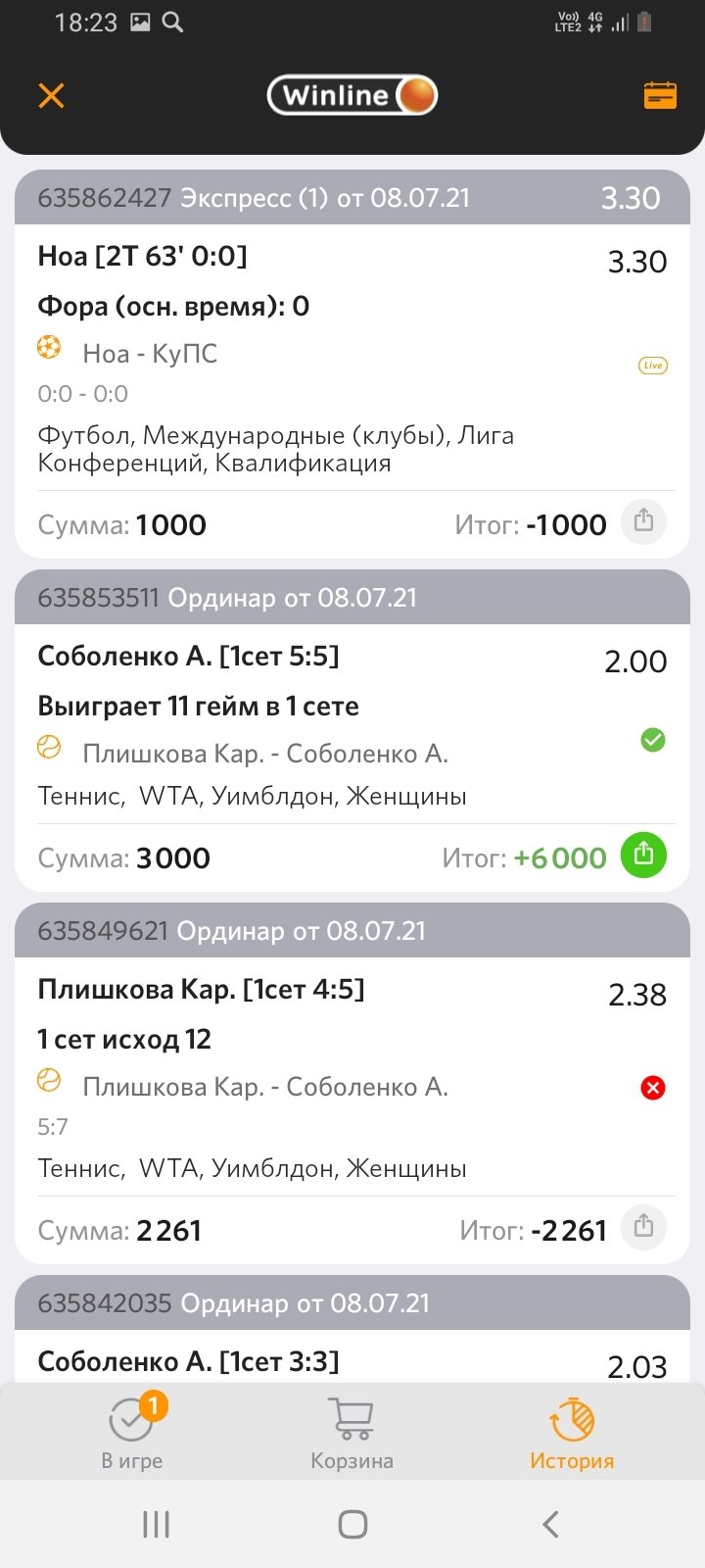 Здравствуйте, я клиент бк Винлайн, при заключении пари номер 635862427 в виде экспресса, событие на теннис было заблокировано и ставка была принята одинаром на футбол, я сразу сделал скриншот этой ставки, позже эта ставка на одно событие рассчитана проигрышем (хотя событие ещё шло и в итоге выиграло), скриншот этого я тоже сделал и прилагаю, после некоторого времени это пари чудесным образом изменяется с добавлением заблокированного пари на теннис...!!!!