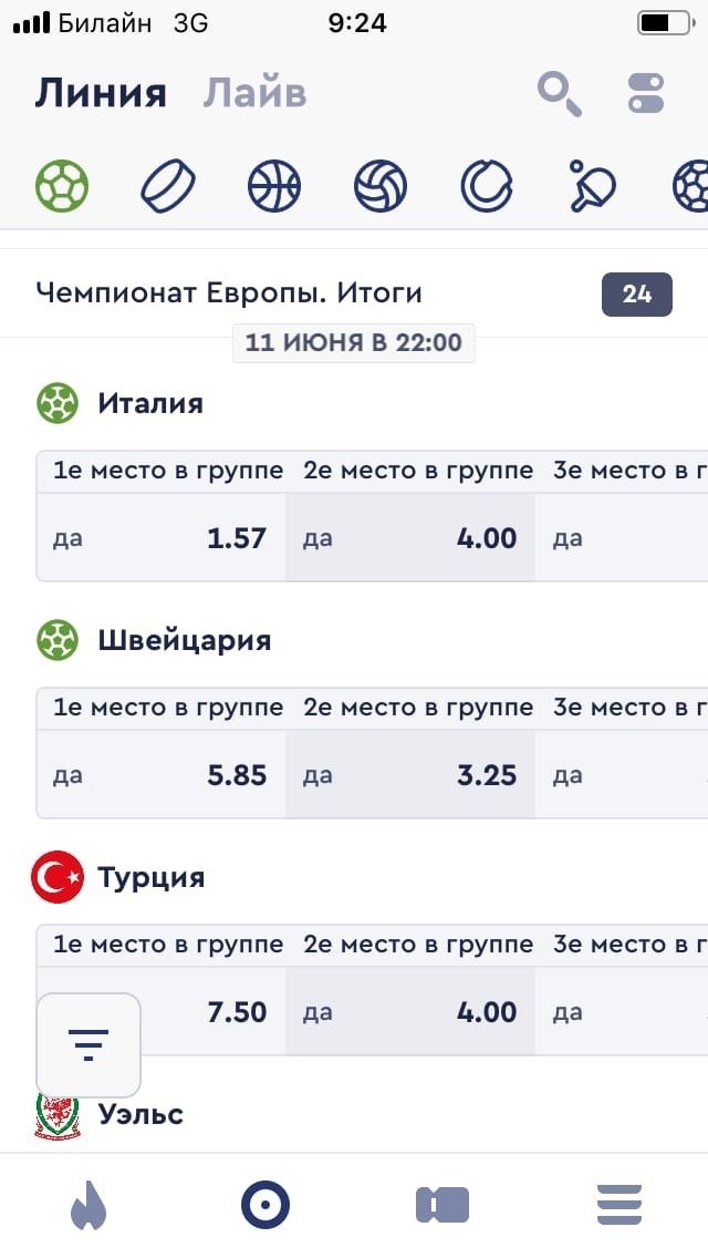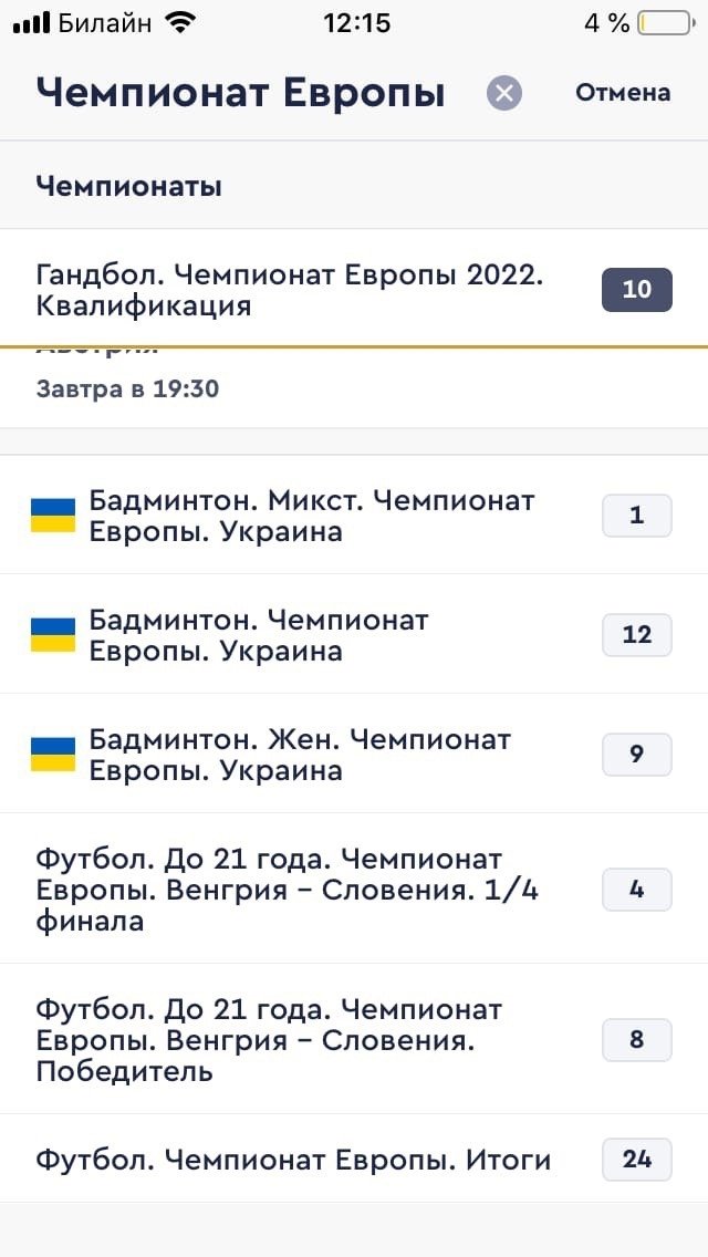 Воспользуйтесь поиском, чтобы быстрее найти исход: нажмите на виджет в виде лупы в правом верхнем углу экрана и напишите в строке «чемпионат Европы».