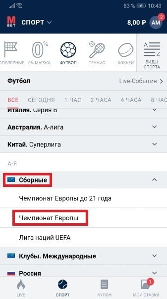 Разберем, как поставить ставку на Евро-2021 (2020) в БК «Марафон» через мобильное приложение. Так же процесс выглядит и на мобильном сайте.