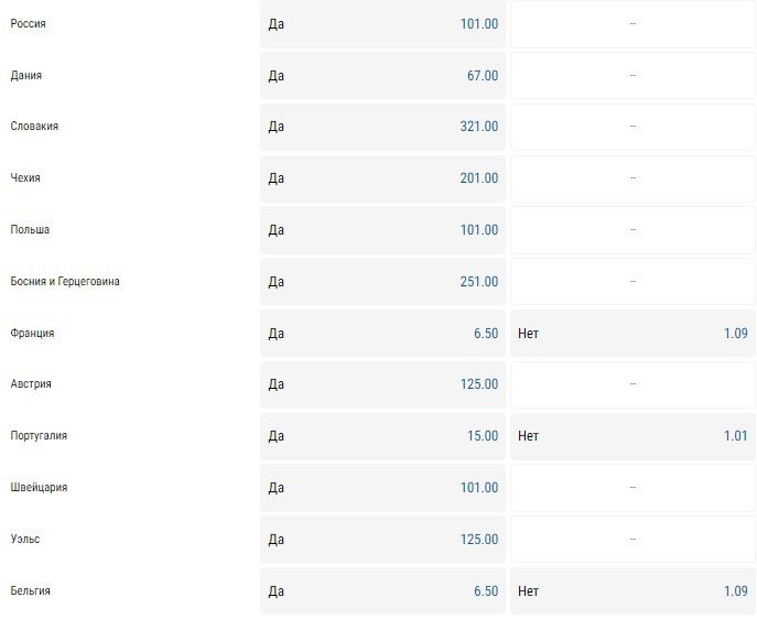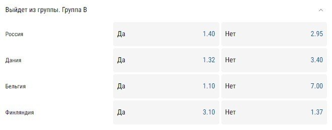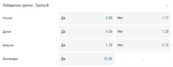 Также есть кэфы на матчи России со всеми участниками квартета B.
