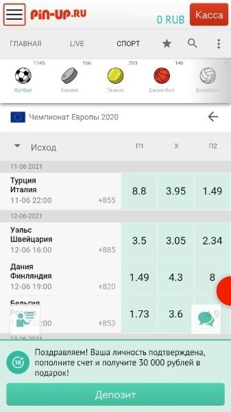 Букмекер представил удобное приложение для смартфонов и планшетов на Андроид. Рассмотрим, как поставить ставку на Евро-2021 (2020) в БК «Пин ап» с телефона.