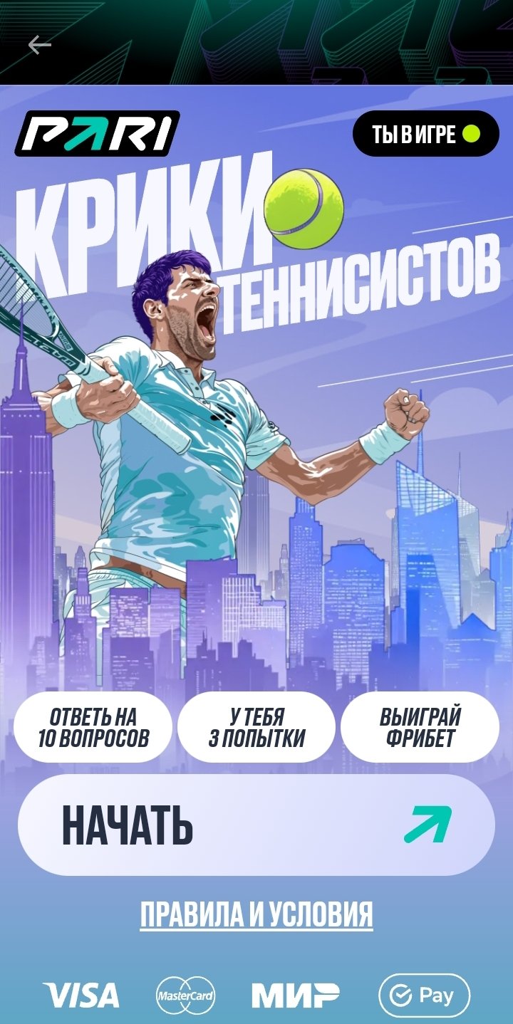 БК PARI раздаёт фриспины, если игрок угадает крик теннисиста