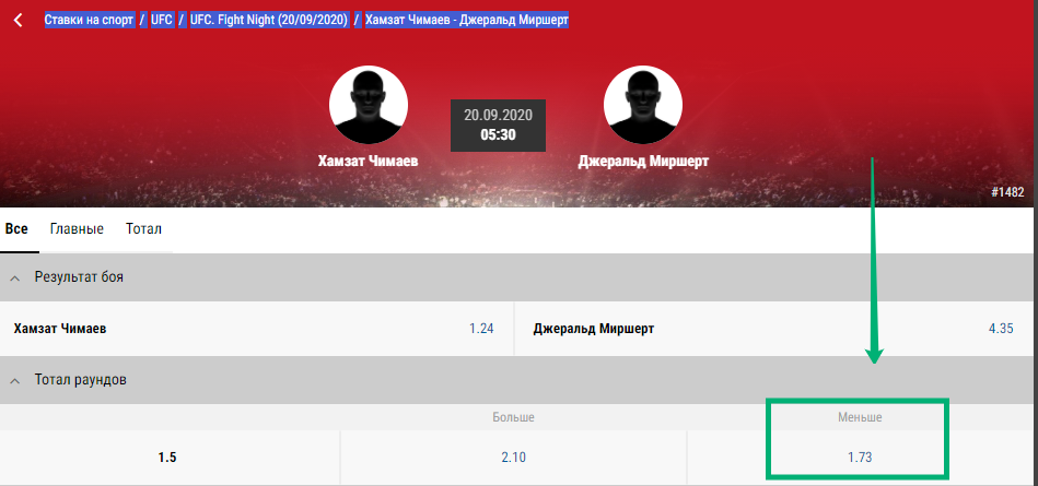 Ставка сгорит, если кто-то из бойцов досрочно одержит победу в 1-м, 2-м или 3-м раунде до отметки 2:30 на секундомере.
