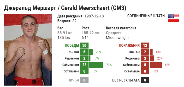 Изучив профили спортсменов, мы узнаем, что оба не привыкли затягивать свои поединки: у Чимаева 100% досрочных побед, у Мершарта — 90%. Хамзат является непобежденным бойцом, встречи которого не длятся больше двух раундов, а вот Джеральд чередует победы с поражениями и давно выбыл из чемпионской гонки.