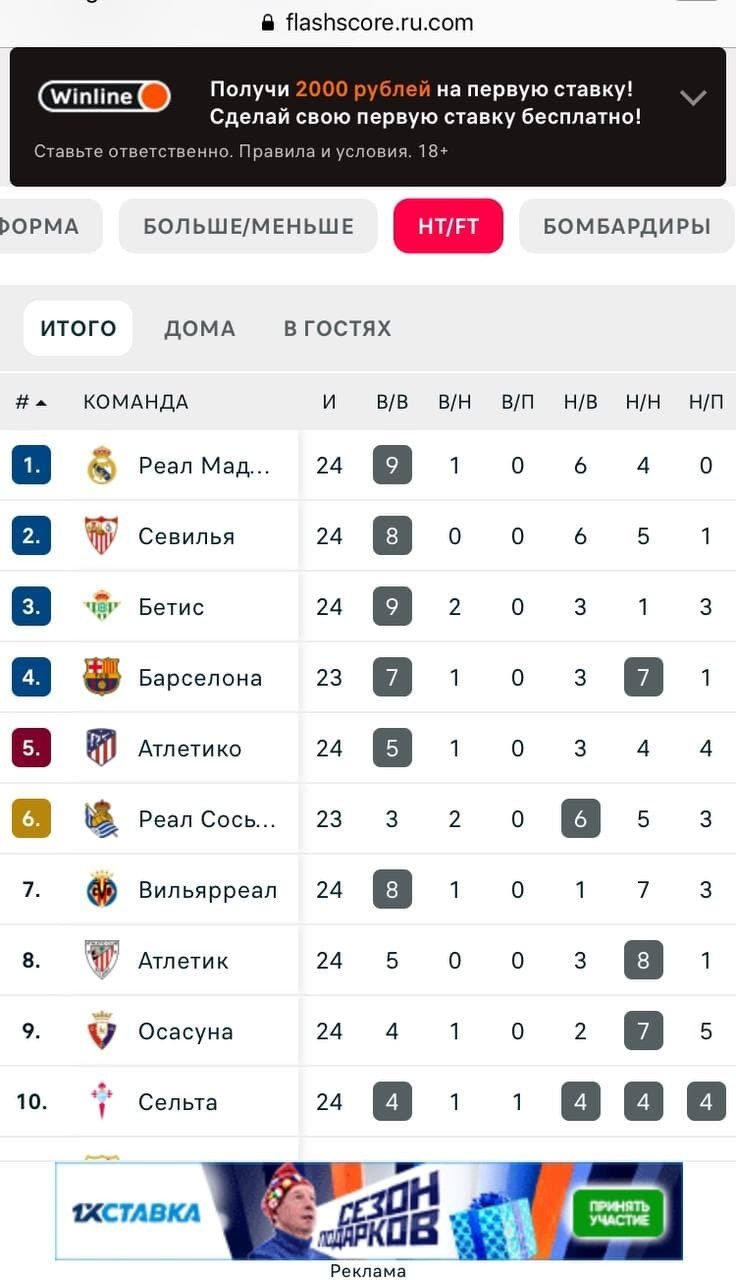 HT/FT. Количество серий из «первый тайм/матч» (итог первого тайма/итог матча) для каждой команды. Возможные варианты: выигрыш/выигрыш, выигрыш/ничья, выигрыш/поражение, ничья/выигрыш, ничья/ничья, ничья/поражение, поражение/выигрыш, поражение/ничья, поражение/поражение.