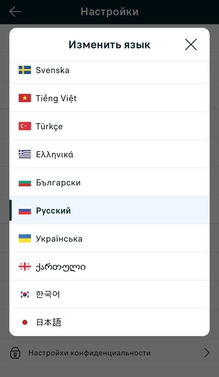 выбор одного из 45 языков;