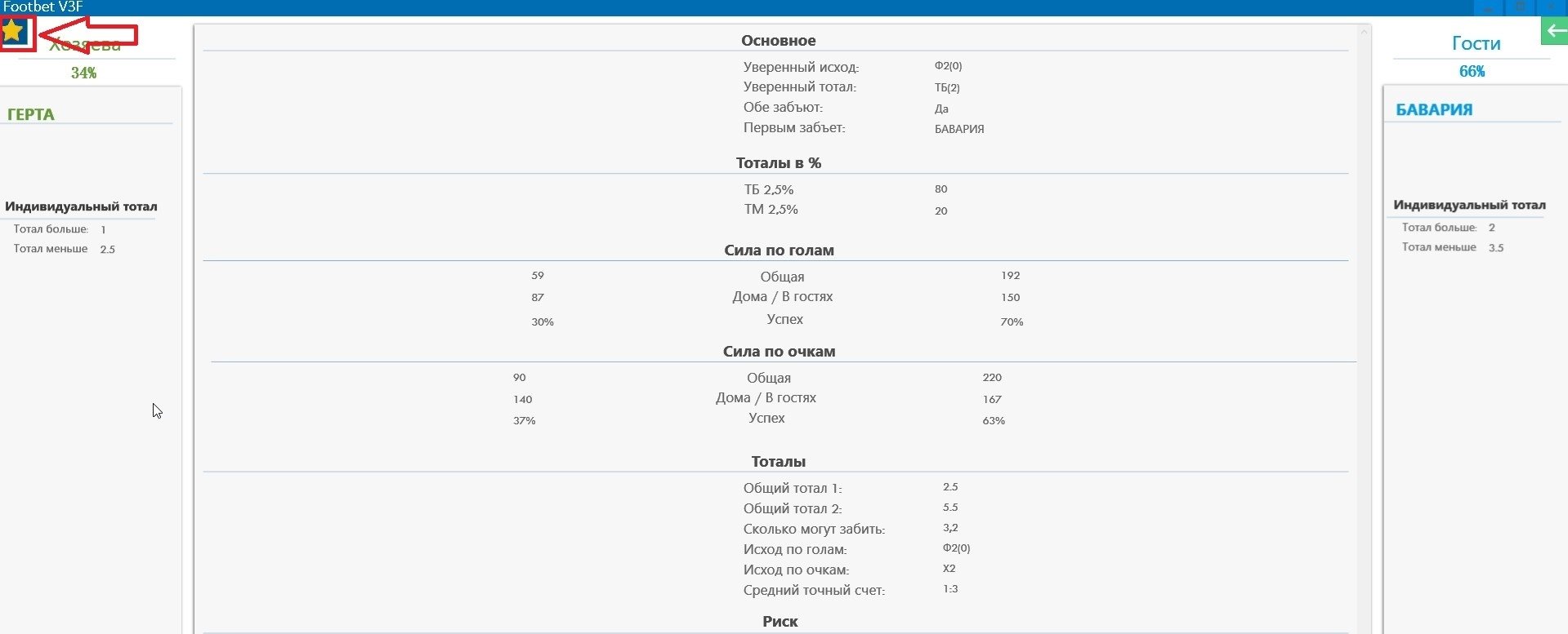 Интересующие матчи можно добавить в избранное. Для этого на странице матча нажмите иконку «звездочка». После этого выбранный матч попадает в раздел «Архив». После перезапуска программы во всплывающем окне появится напоминание, что прогнозы из «Архива» еще актуальны.