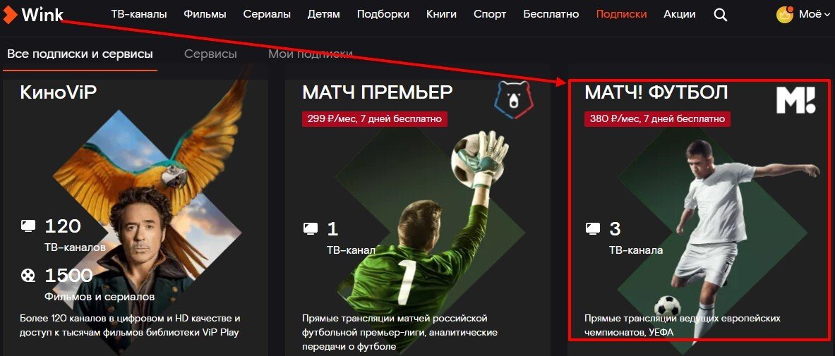 Сервисы Wink, IVI и «Кинопоиск» показывают «Матч ТВ» бесплатно, но везде, кроме «Иви» придется зарегистрироваться. Для доступа к платным футбольным каналам нужна подписка «Футбол».