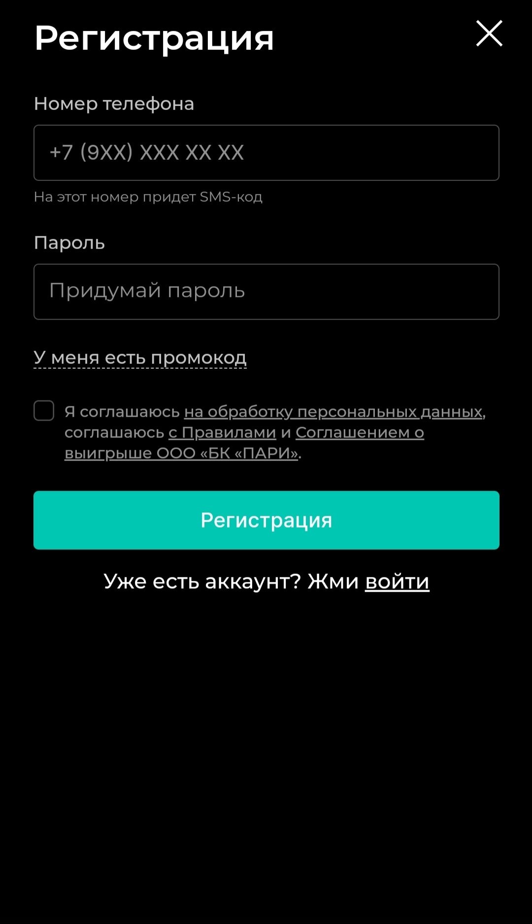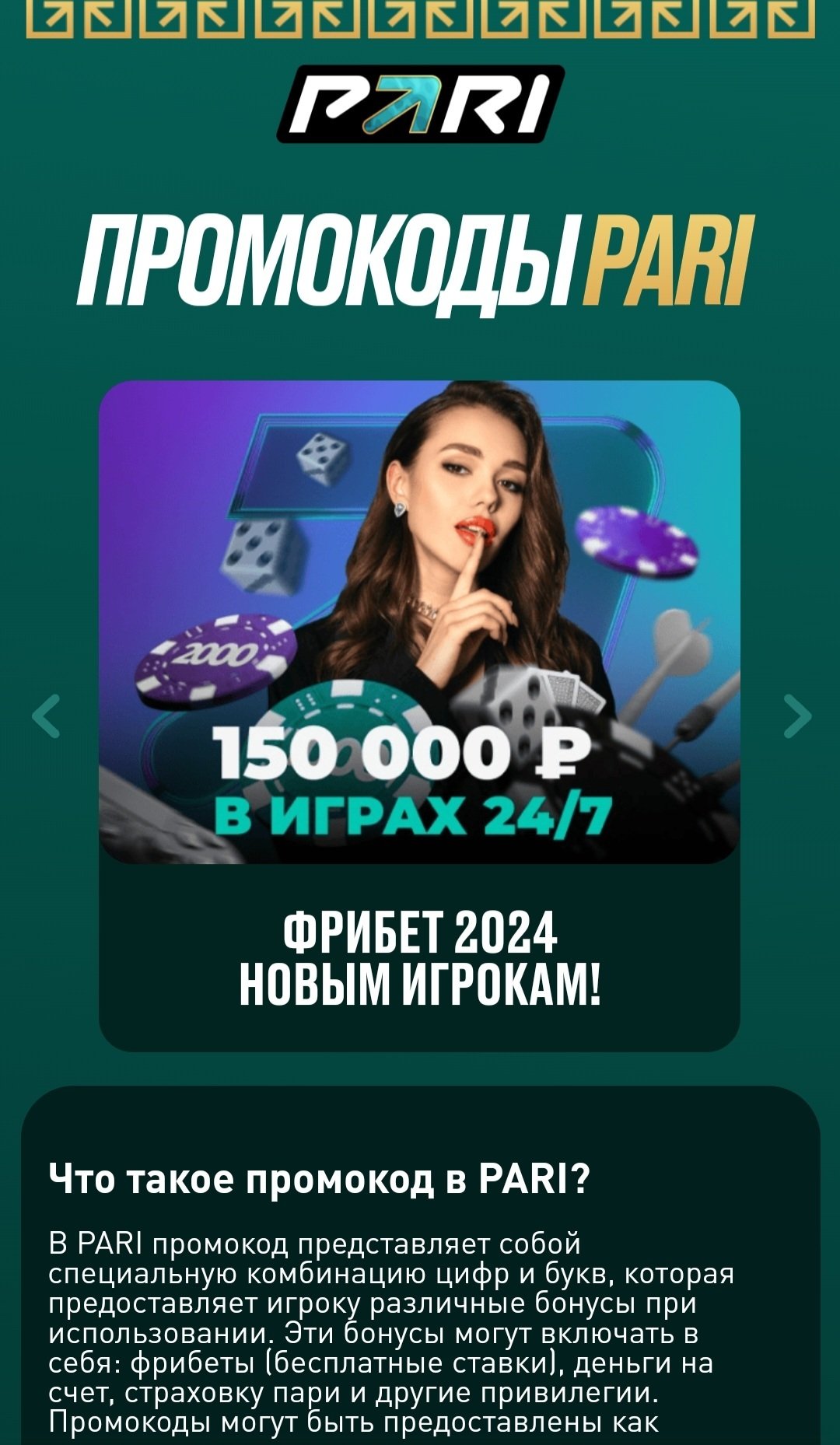 Букмекерская компания Pari предлагает новым клиентам бонус-коды на спортивные ставки. Чтобы воспользоваться ими, выполните следующие шаги: