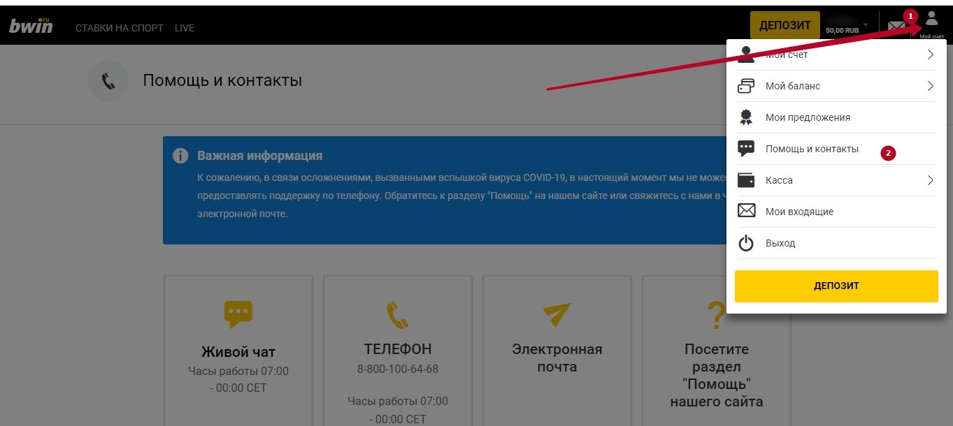 Как связаться с техподдержкой bwin
