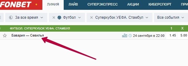 Разберем пример пари на ИТМ1 в БК «Фонбет»: