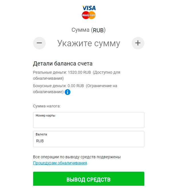 Обратите внимание, что букмекер как налоговый агент в соответствии с законодательством обязан удержать налог в размере 13 % от суммы чистого выигрыша. При этом Налоговый кодекс не дает четкого определения, должен ли налог взиматься с каждой выигранной ставки или с разницы между депозитом (интерактивной ставкой) и суммой на счете к моменту вывода средств.