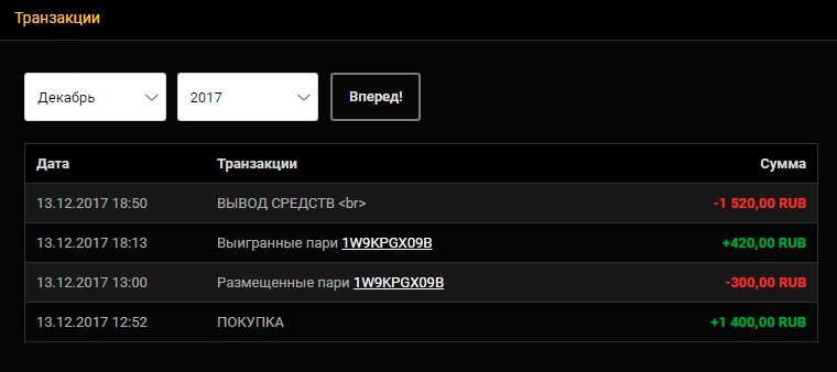 После создания заявки на вывод денежных средств надо дождаться подтверждения букмекера. Заявленная на вывод сумма будет отображена в меню «Мой аккаунт», подменю «Все операции».