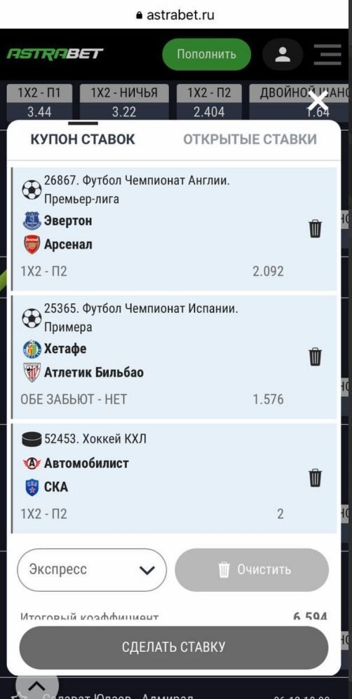 Новые клиенты «Астрабет» могут получить бонус 100% на первый депозит до 10 000 рублей. Обычно мы пишем о таком бонусе в начале раздела о регистрации. Но в данном случае вероятность отыграть «перводеп», сделав подряд 10 успешных ставок-экспрессов, близка к нулю.