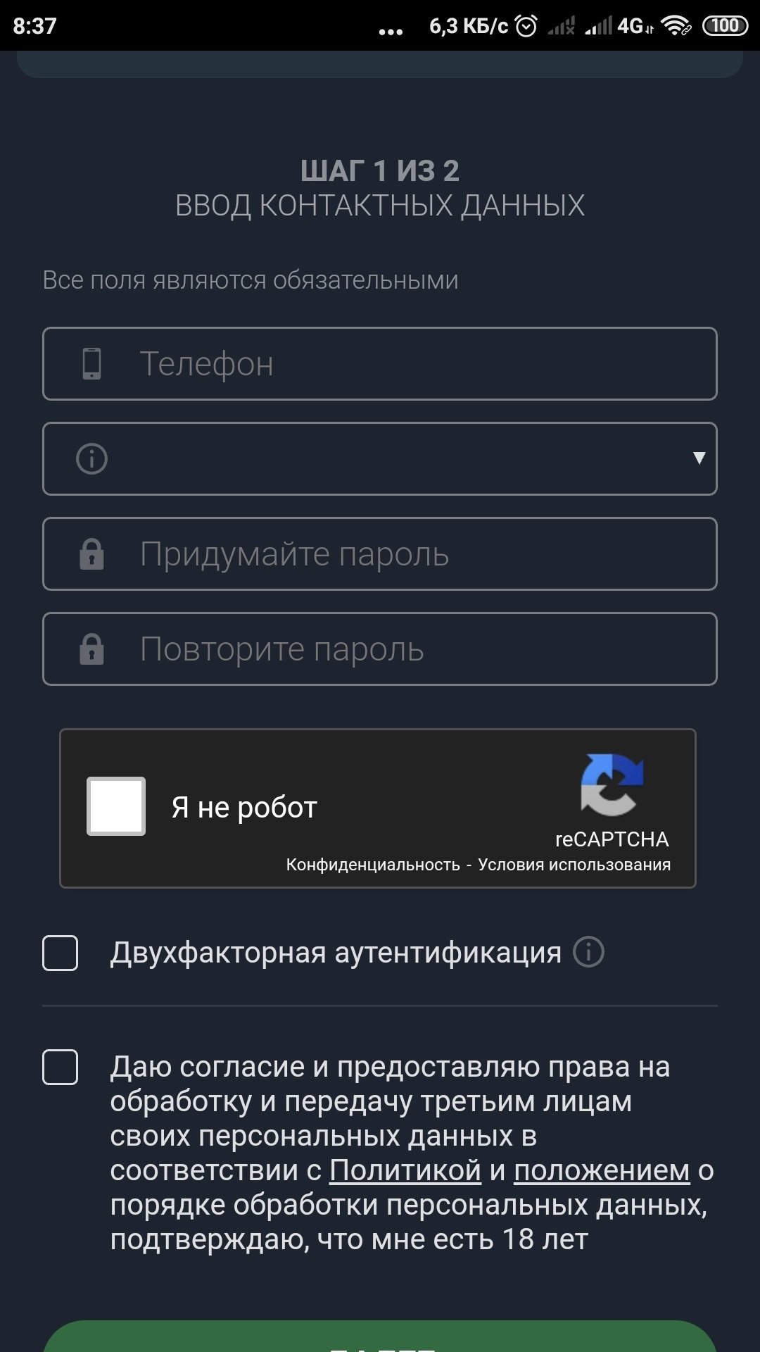 Шаг 1. Регистрация на сайте букмекера