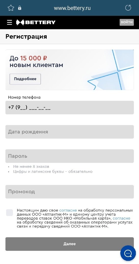 Прежде чем начать делать ставки на сайте БК BETTERY, необходимо пройти процедуру регистрации в конторе. Для этого нажимаем кнопку «Регистрация» в правом верхнем углу экрана. Затем надо заполнить форму с личной информацией.