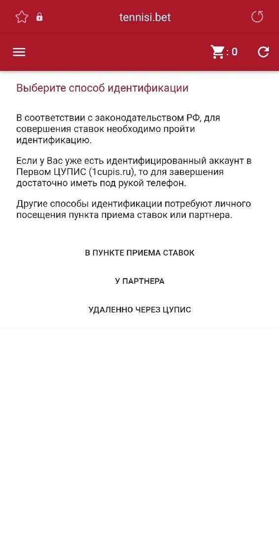 Если у игрока нет верифицированного аккаунта в ЦУПИС, при выборе пункта «Через ЦУПИС» появится ссылка на сайт Единого ЦУПИС 1cupis.ru, на котором нужно будет пройти регистрацию. Потребуется указать номер мобильного телефона, адрес электронной почты, а также придумать псевдоним и пароль. После нужно подтвердить свой телефонный номер, введя в специальное поле код, присланный по SMS. Игра на ставках должна стать доступной на условиях, действующих при упрощённой идентификации личности.