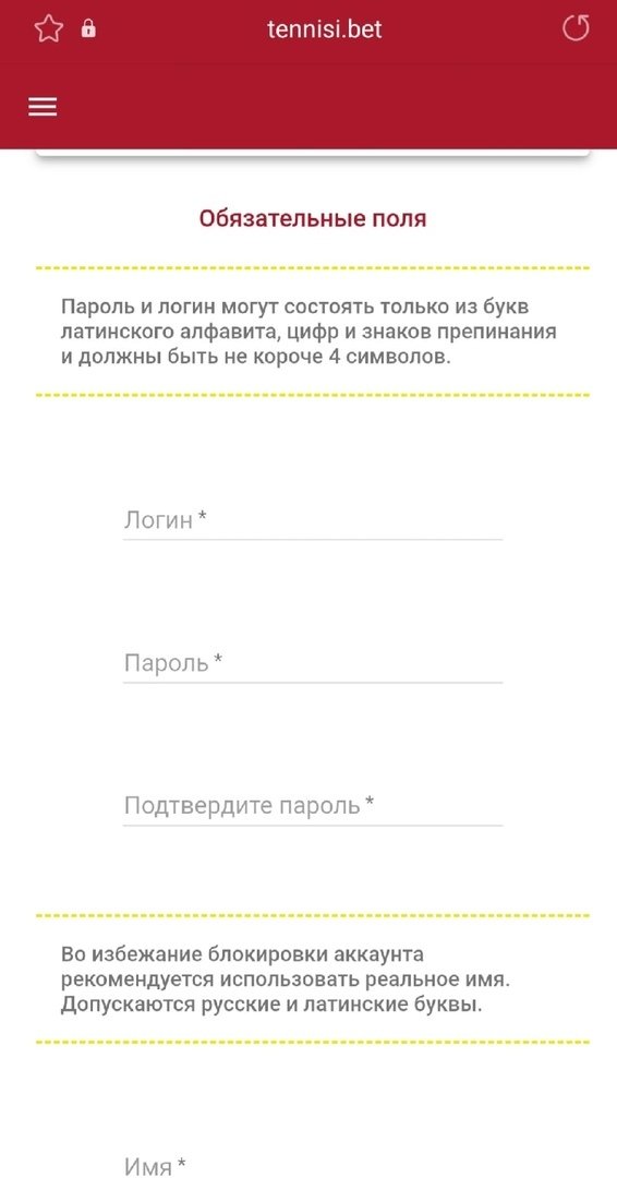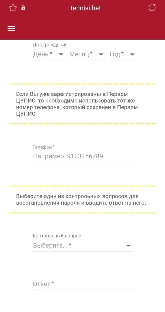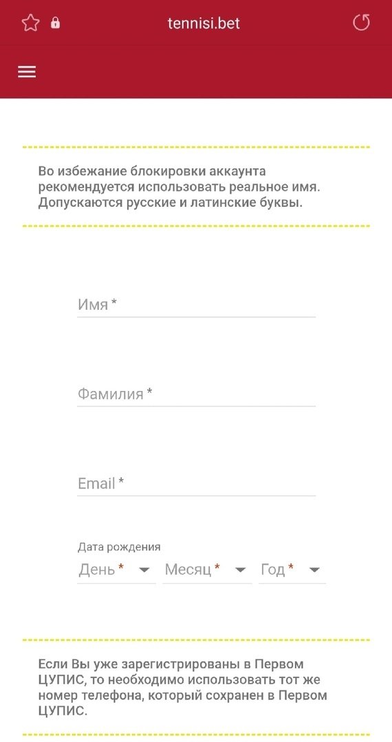В форме регистрации указывайте только свои реальные данные и заполняйте их без ошибок! В противном случае вы не сможете пройти идентификацию личности и делать ставки.