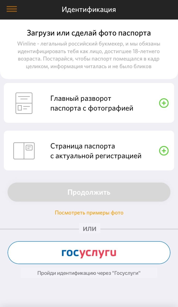 Шаг 2. Идентификация личности для БК Winline