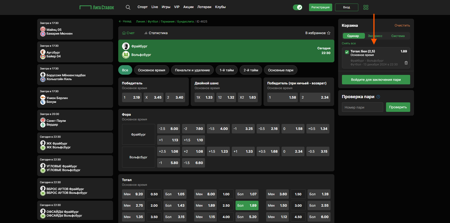 Чтобы поставить бонус, необходимо правильно выбрать исход. Если игрок ошибётся на этом этапе, система не даст заключить пари. В «Лиге Ставок» флагманской акцией стала раздача фрибетов за регистрацию, верификацию и пополнение счёта на сумму от 1000 рублей. Поэтому правила заключения пари рассмотрим на примере этого промопредложения.