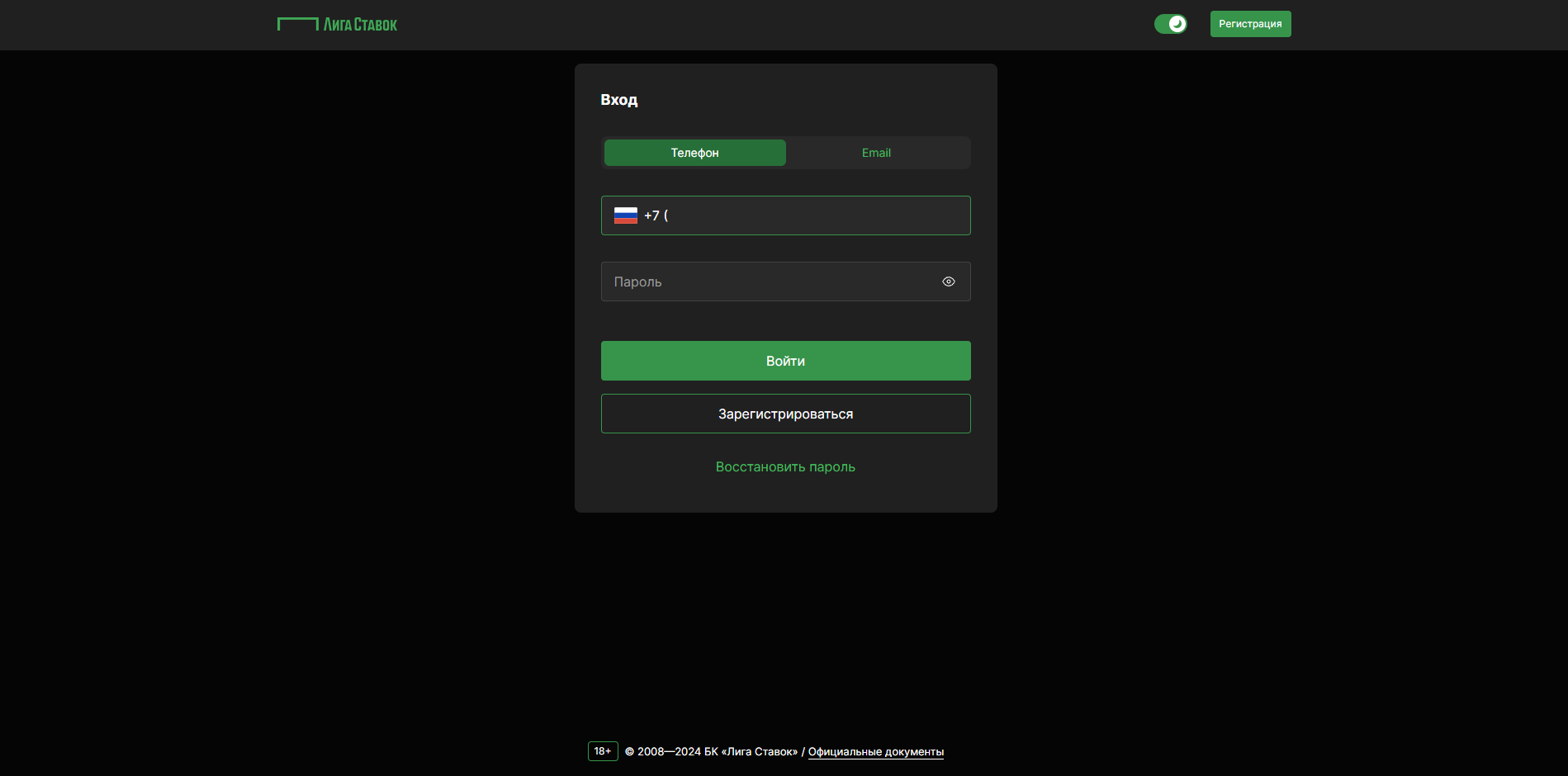 Выбираете способ авторизации. Компания разрешает войти в аккаунт по привязанным к профилю телефону и e-mail.