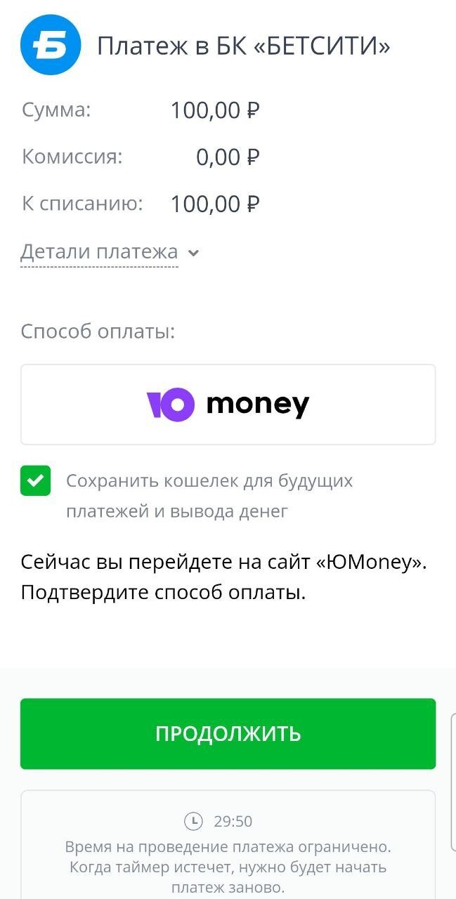 Пополнение счета БЕТСИТИ через электронный кошелек