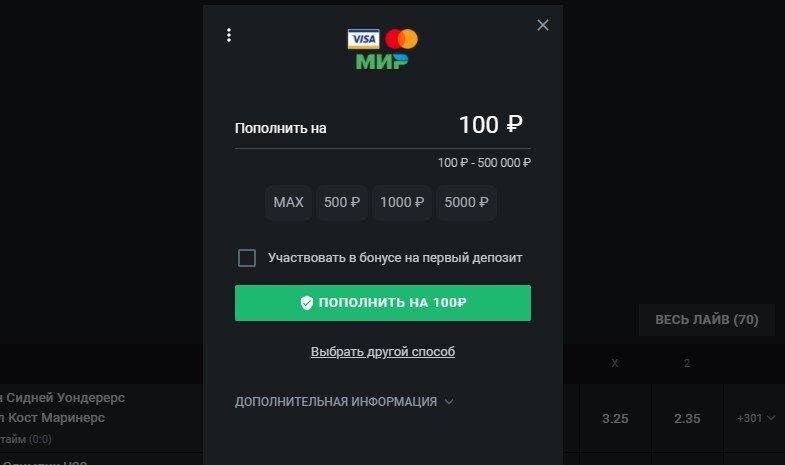 Пополнение счета в БК «Леон» с помощью банковской карты