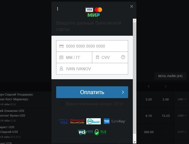 - Пополнение счета в БК «Леон» с помощью банковской карты