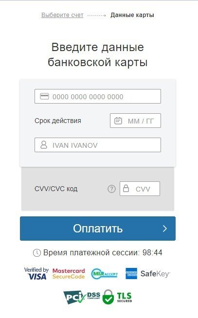 На странице оплаты введите реквизиты карты и нажмите «Оплатить».