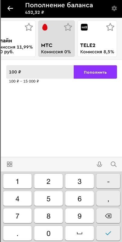 Пополнение баланса с помощью мобильных операторов проходит так: