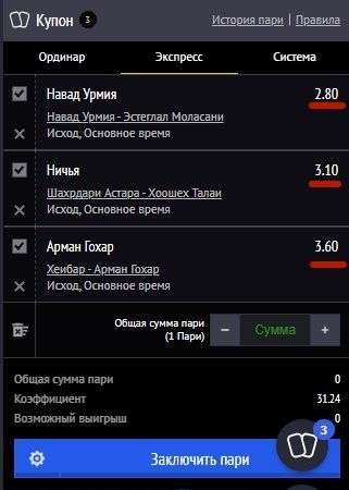 Экспресс-ставка выиграет, если беттор предугадает исходы всех событий. В случае хотя бы одной ошибки ставка сгорает.