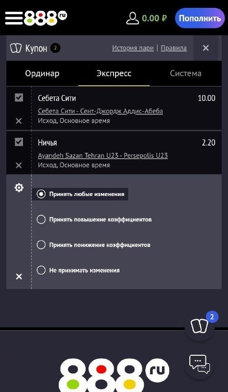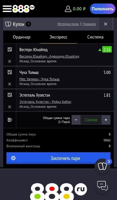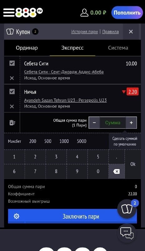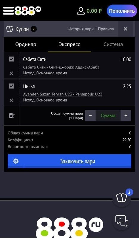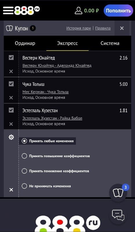 Как сделать экспресс-ставку в приложении 888