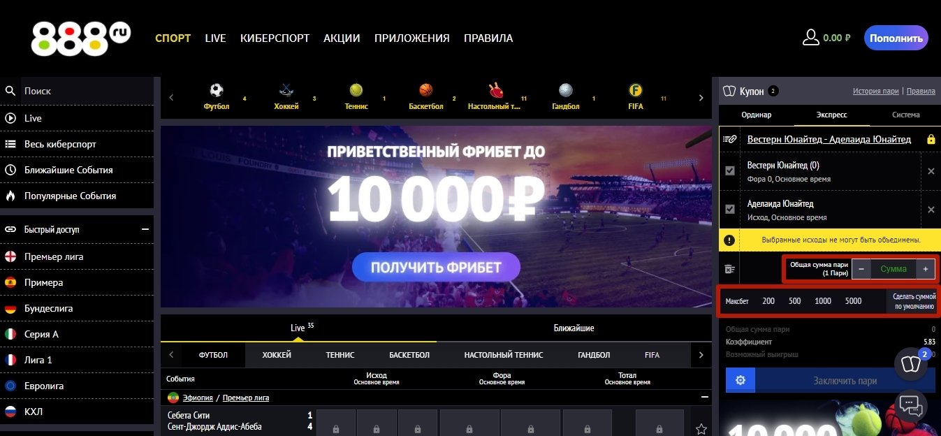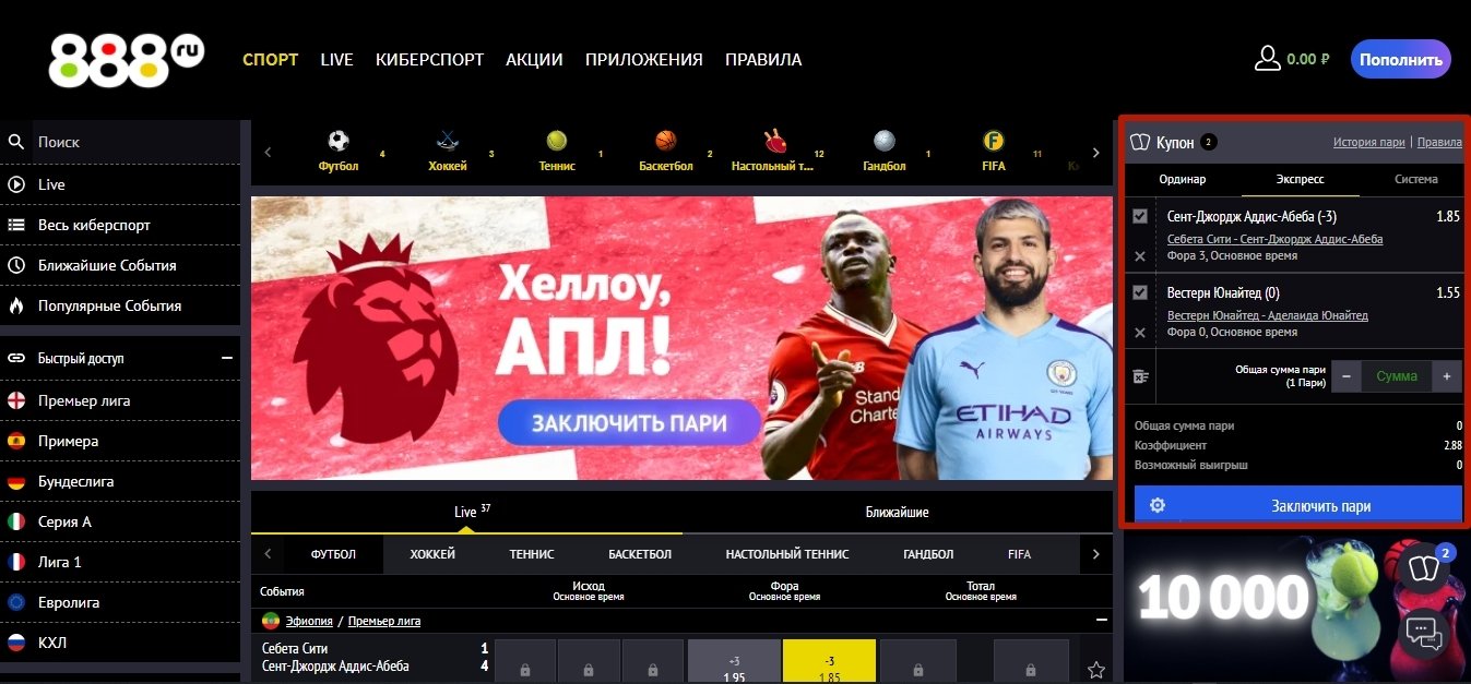 Как сделать экспресс-ставку на сайте БК 888