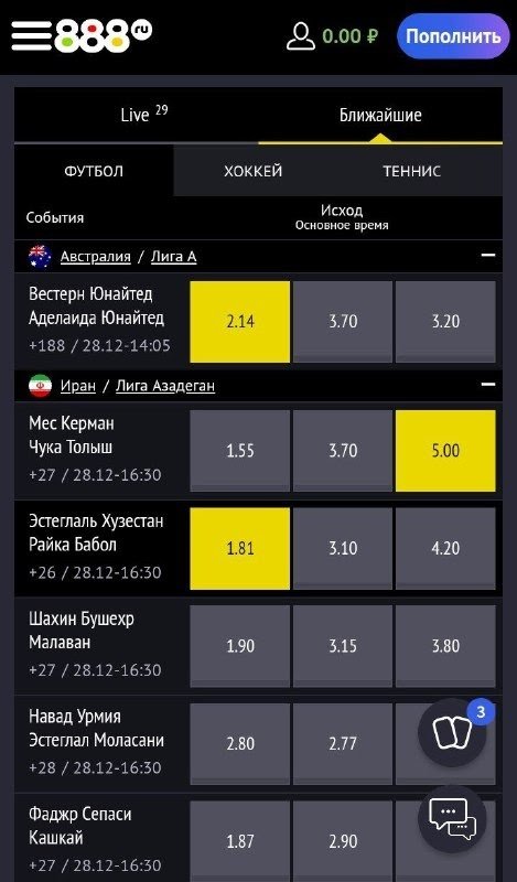 В этой статье мы подробно расскажем и покажем, как ставить экспресс в букмекерской конторе 888. Экспресс — это ставка на ряд исходов: коэффициенты перемножаются, но и риск проигрыша растет, так как для победы нужно угадать все исходы.