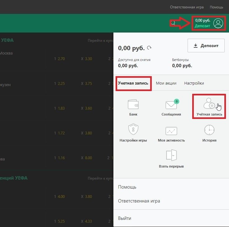 на сайте, в личном кабинете игрока.