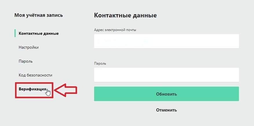 Перейдите во вкладку «Учётная запись», пункт «Верификация».