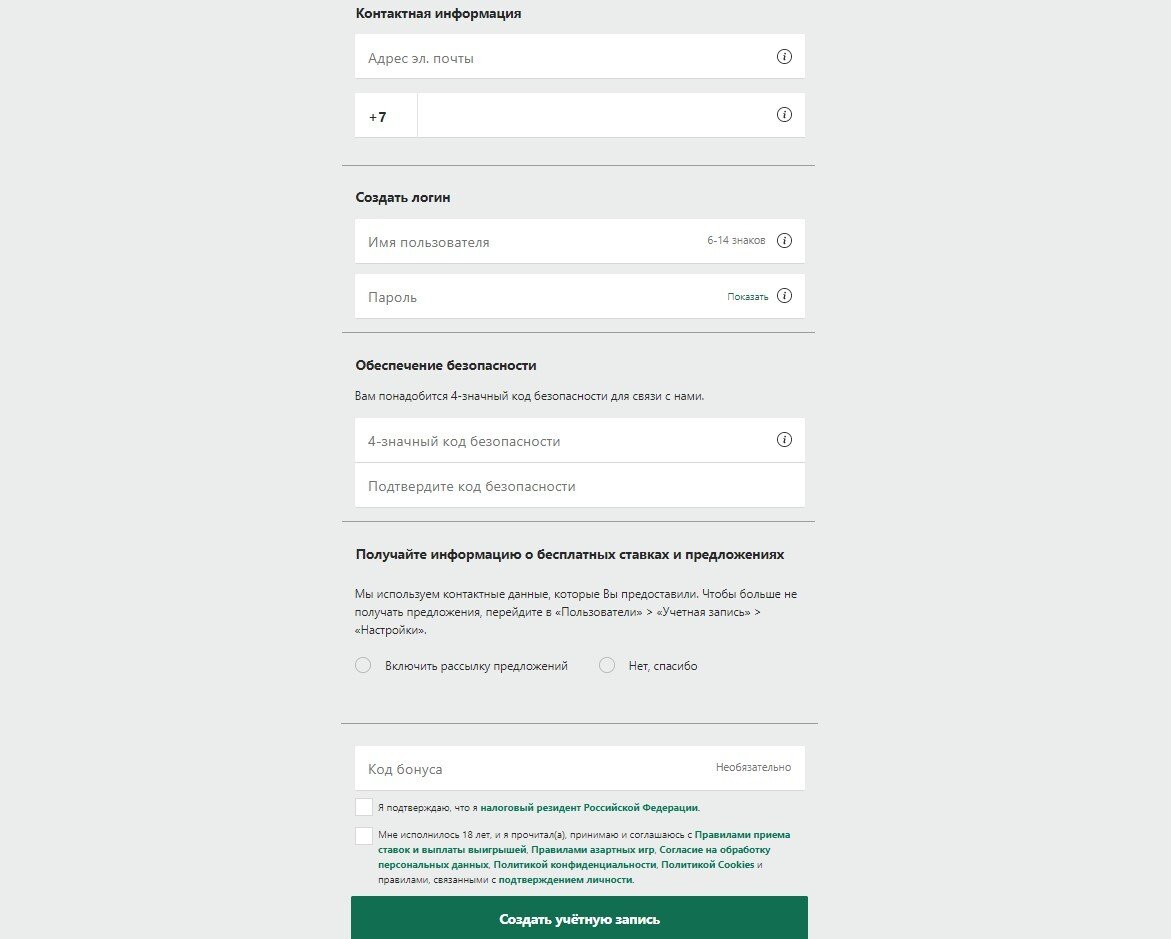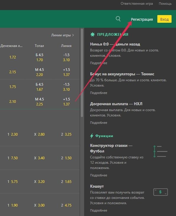 Шаг 1. Регистрация на официальном сайте букмекера
