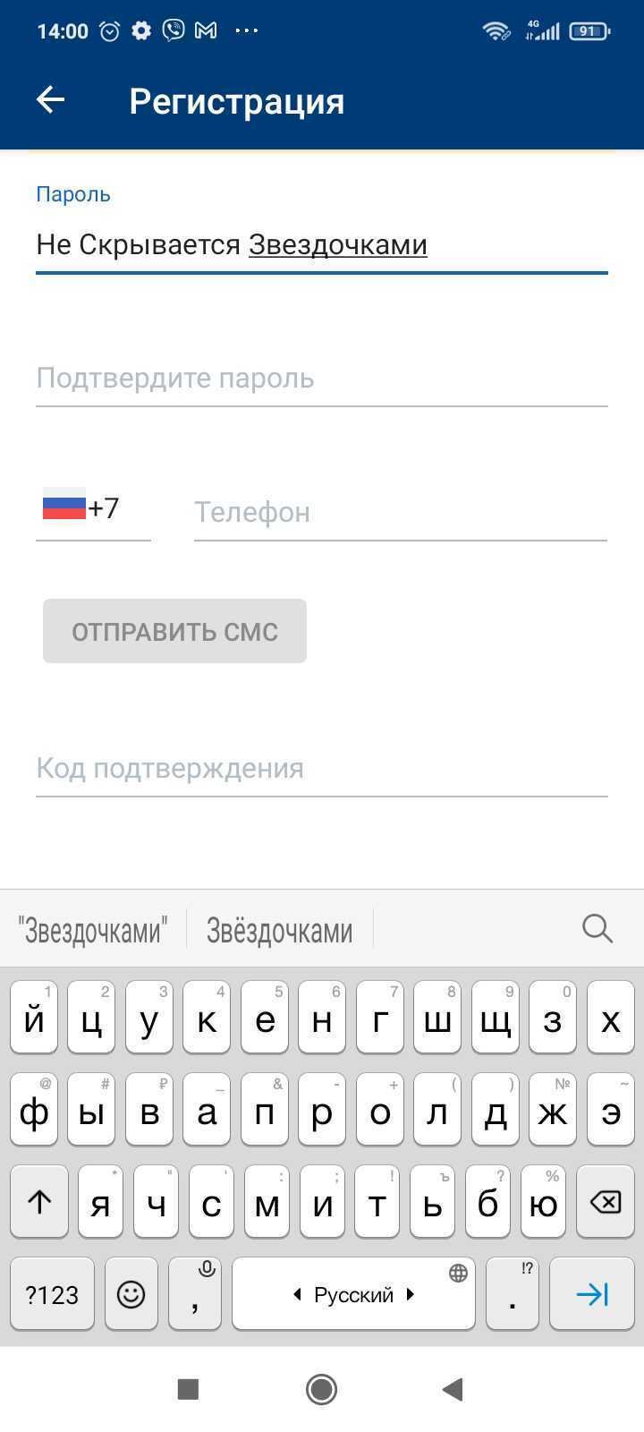 На указанный ранее номер телефона придёт СМС-сообщение с кодом, впишите его в пустое поле и завершите регистрацию.