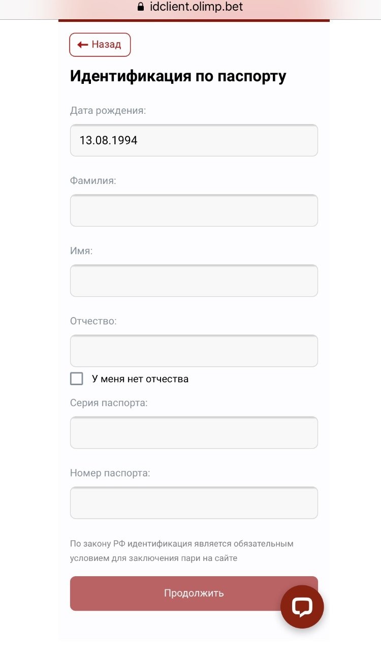 Шаг 2. Идентификация личности в БК «Олимп»