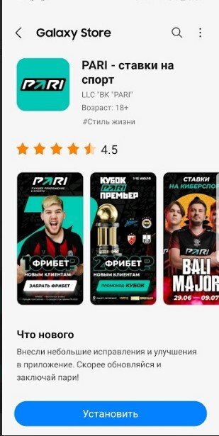Приложение PARI можно скачать как из различных магазинов (например, RuStore или App Gallery), так и напрямую с официального сайта букмекера.