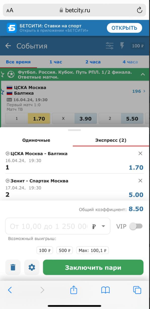 В статье мы разберем, как ставить экспресс на сайте БК БЕТСИТИ и мобильных приложениях на Android и iOS.