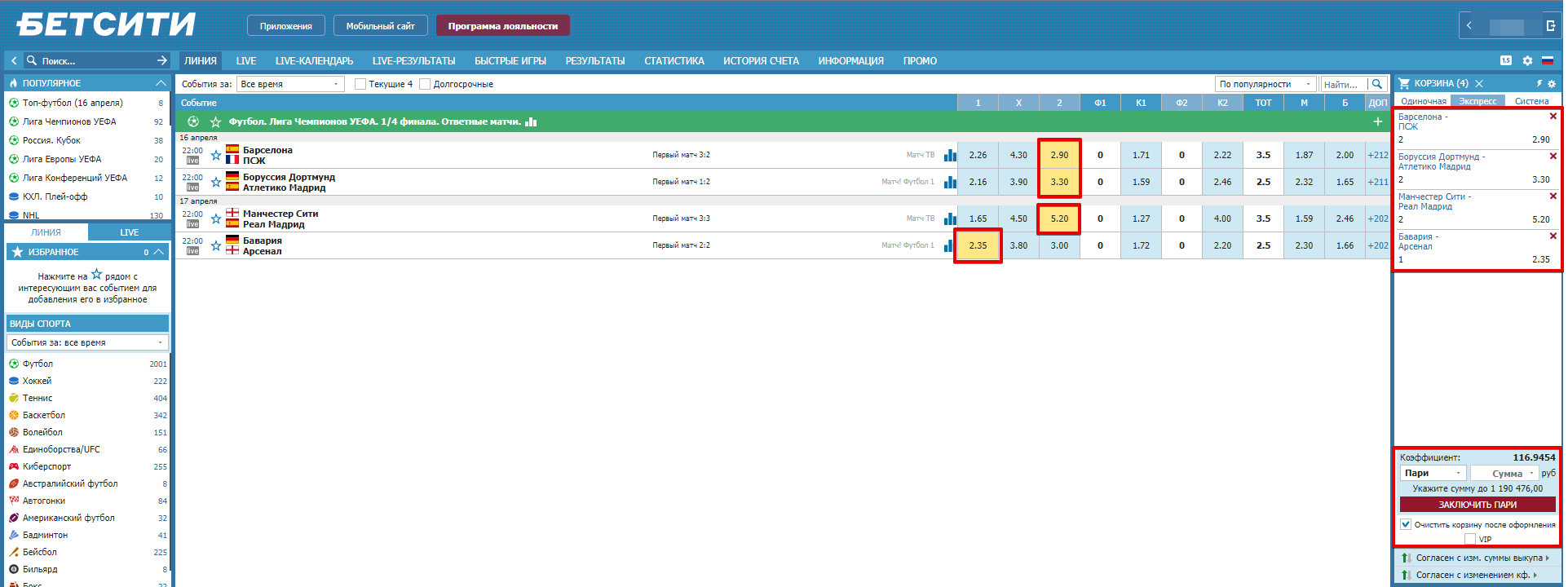 Как сделать экспресс-ставку на сайте БК БЕТСИТИ