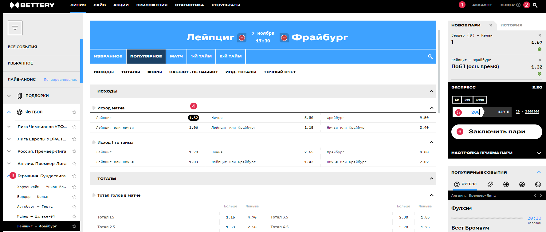 В статье вы узнаете, как поставить экспресс в БК BETTERY с компьютера и телефона. Также мы объясним правила расчёта такого типа пари на примере.
