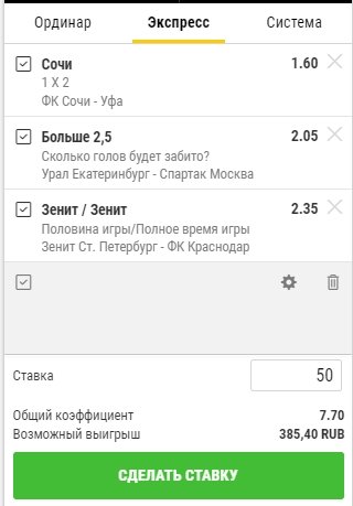 Если хотя бы одно событие из купона не «доедет», ставка «сгорит» полностью.