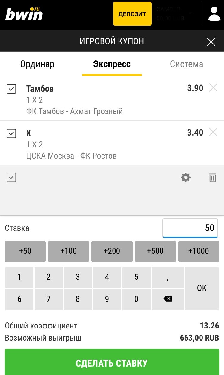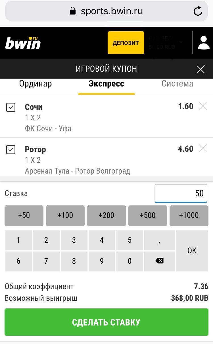 Как сделать экспресс-ставку в мобильной версии сайта БК bwin
