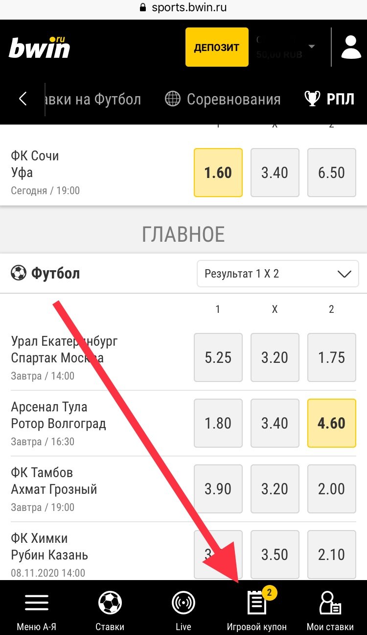 Добавьте матчи в игровой купон, после чего перейдите в него.
