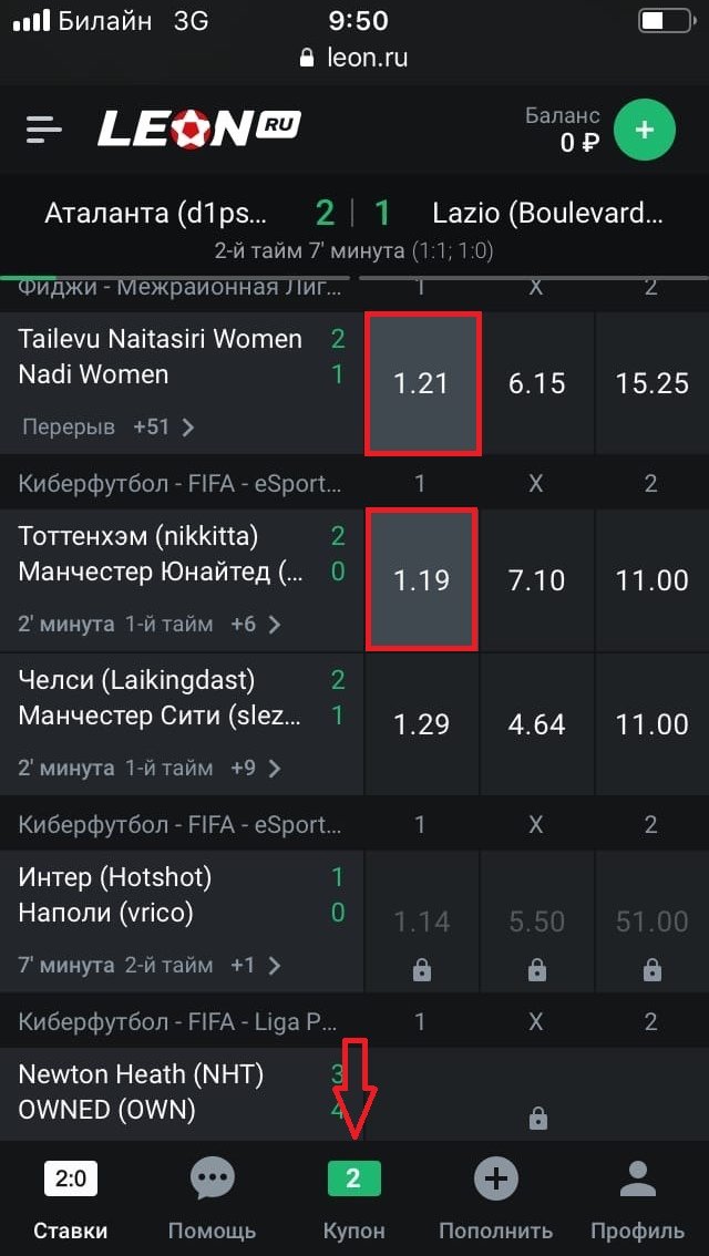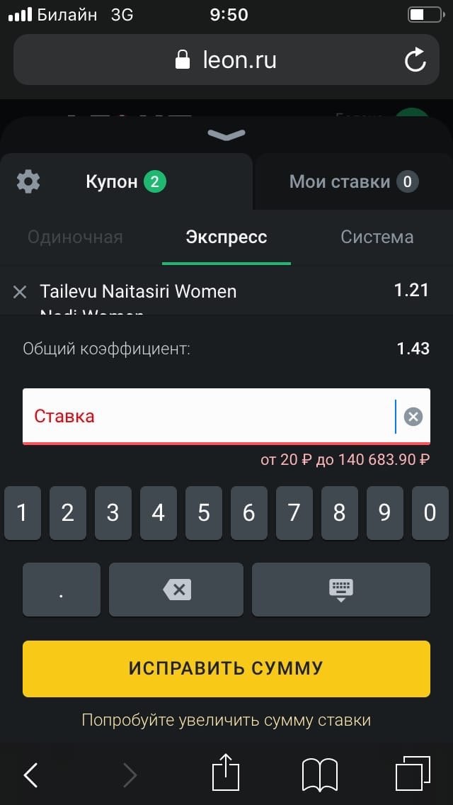 Как сделать ставку-экспресс в мобильной версии сайта БК Leon
