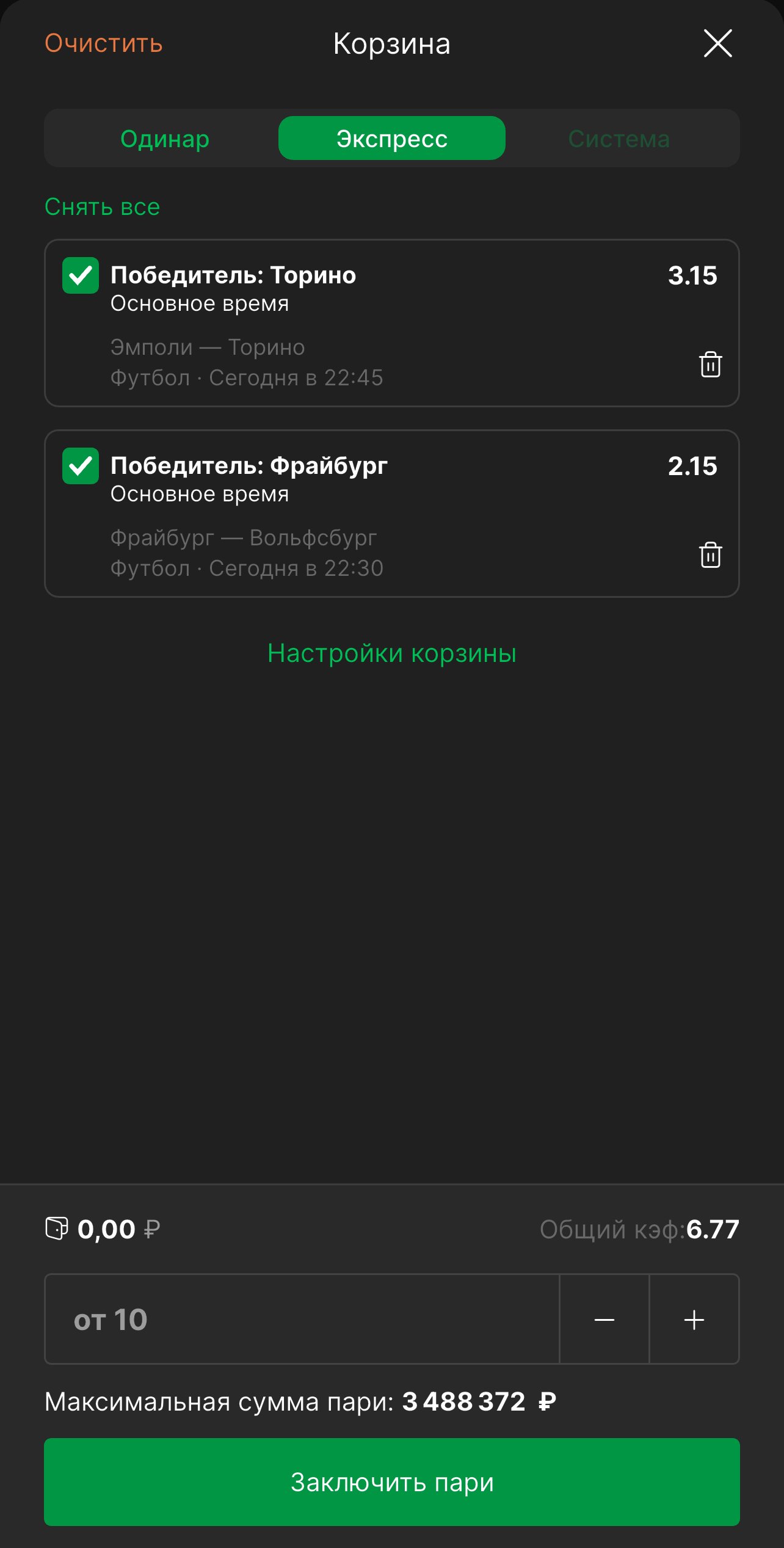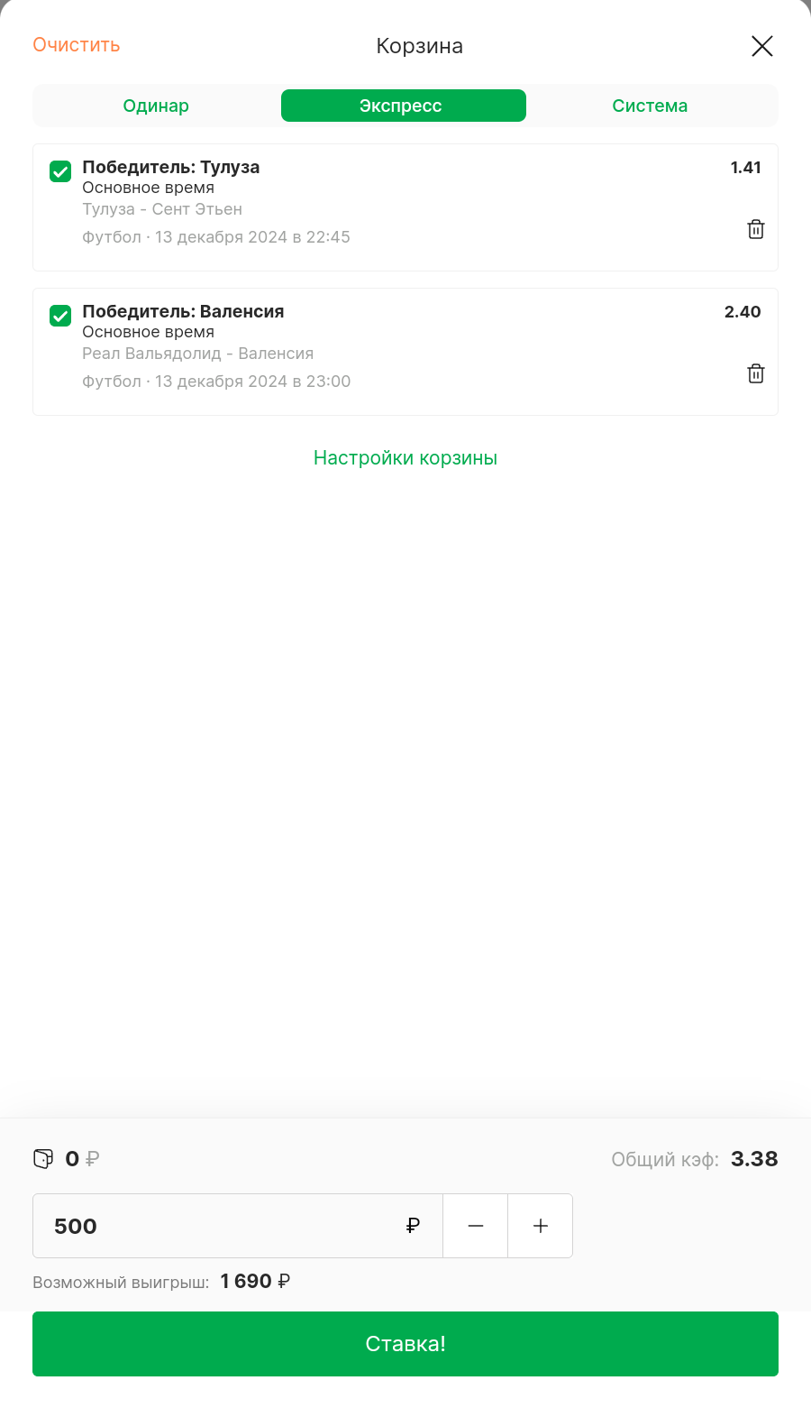 Экспресс — это тип ставочного купона, в который входят несколько событий, у ставки высокий коэффициент, но и риск велик. Подробнее читайте в статье Школы ставок.