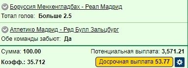 Поддержка компании предупреждает, что возможность досрочного выкупа есть не всегда. Однако, как правило, если последнее событие из экспресса котируется в Live-режиме, cashout можно сделать до его последних минут.