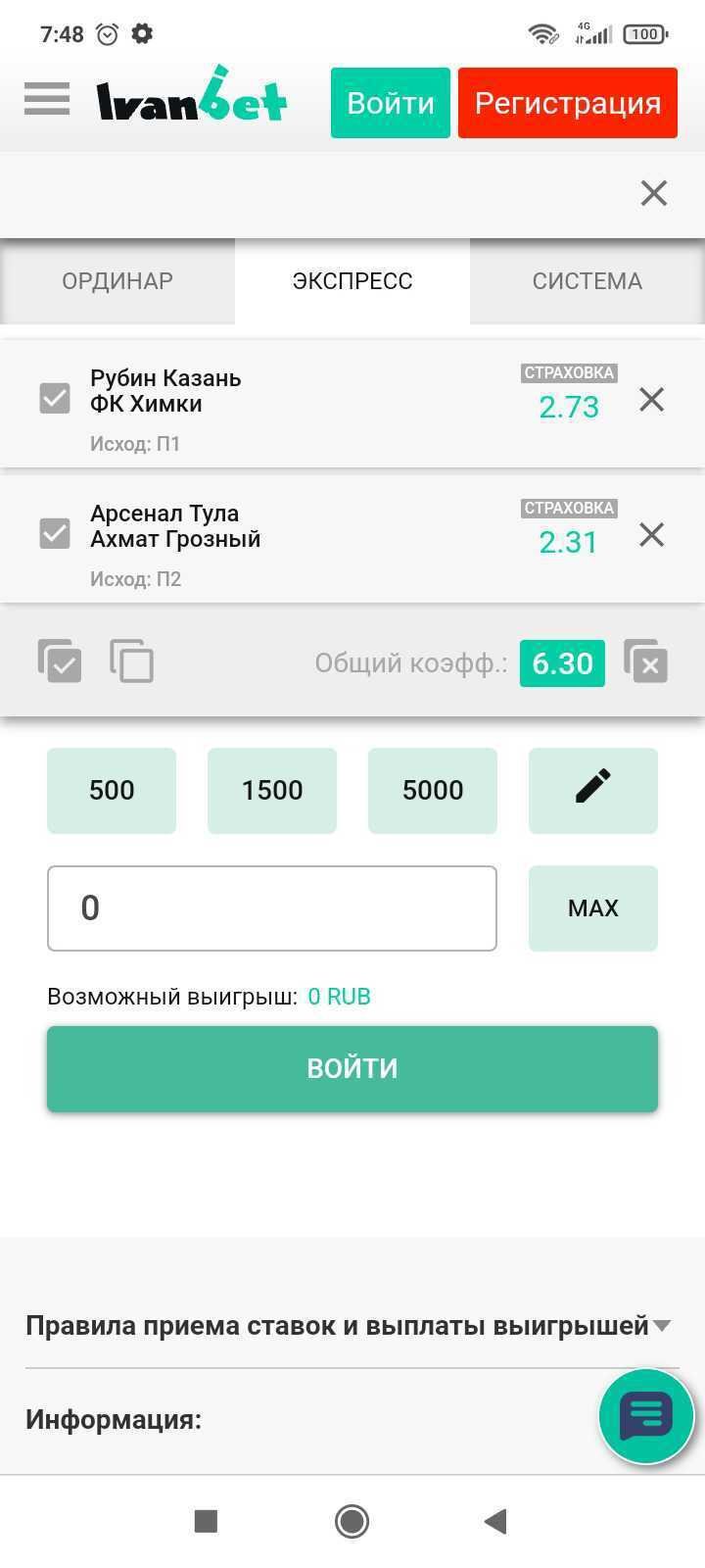 Для заключения экспресс-ставок на сайте ivanbet.ru нужно выполнить несколько действий: